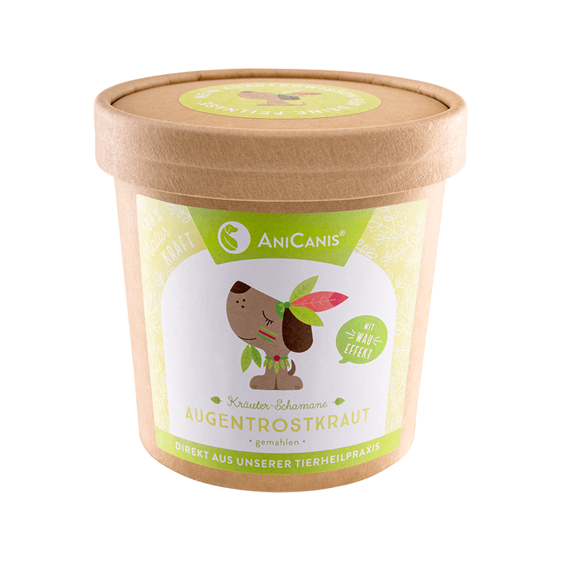 Unser AniCanis® Augentrost für Hunde macht seinem Namen wirklich alle Ehre: Er ist das Futter-Kraut für die Augen Deines Hundes schlechthin. Denn schon seit Generationen wurde der Augentrost, wie es der Name schon verrät, in der Volksheilkunde bei verschiedenen Augenerkrankungen unterstützend eingesetzt. Aber auch bei Husten, Schnupfen und trockenen Nasenschleimhäute kann es ein unterstützender Versuch wert sein.