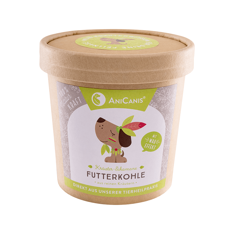 Man darf auch ruhig mal Schwarz sehen! Unsere AniCanis® Kräuter Futterkohle enthält natürliche Kohle aus feinen Kräutern und das gesammelte Wissen unseres Kräuter-Schamanen über die Heilkraft der Natur. Schadstoffe pfui! – da freut sich die Verdauung.